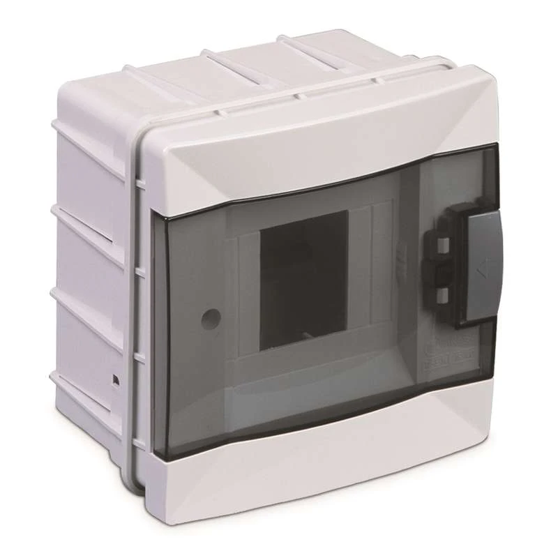 Габариты: 144 х 148 х 100 мм. Изготовлен из плотной термостойкого пластмассы, корпус белый, дверца прозрачная, серая.