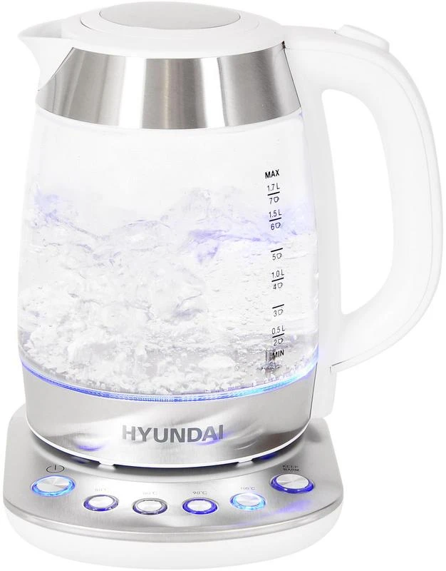 Товар Чайник HYK-G4033 1.7л. 2200Вт (стекло) бел./серебр. HYUNDAI 1430083 доступен с доставкой по г. Москва, Московской области и территории РФ, или самовывозом.