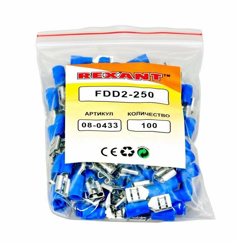 Товар Клемма плоская изол. (гнездо) (VF 2-250) REXANT 08-0433 доступен с доставкой по г. Москва, Московской области и территории РФ, или самовывозом.