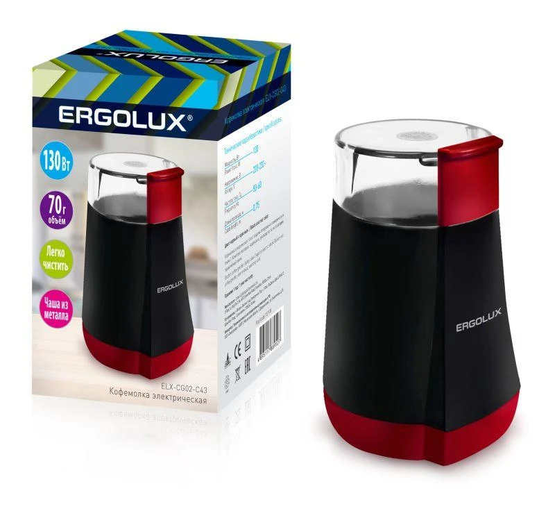 Товар Кофемолка электрич. ELX-CG02-С43 130Вт 220-240В 70г черн./красн. Ergolux 13978 доступен с доставкой по г. Москва, Московской области и территории РФ, или самовывозом.