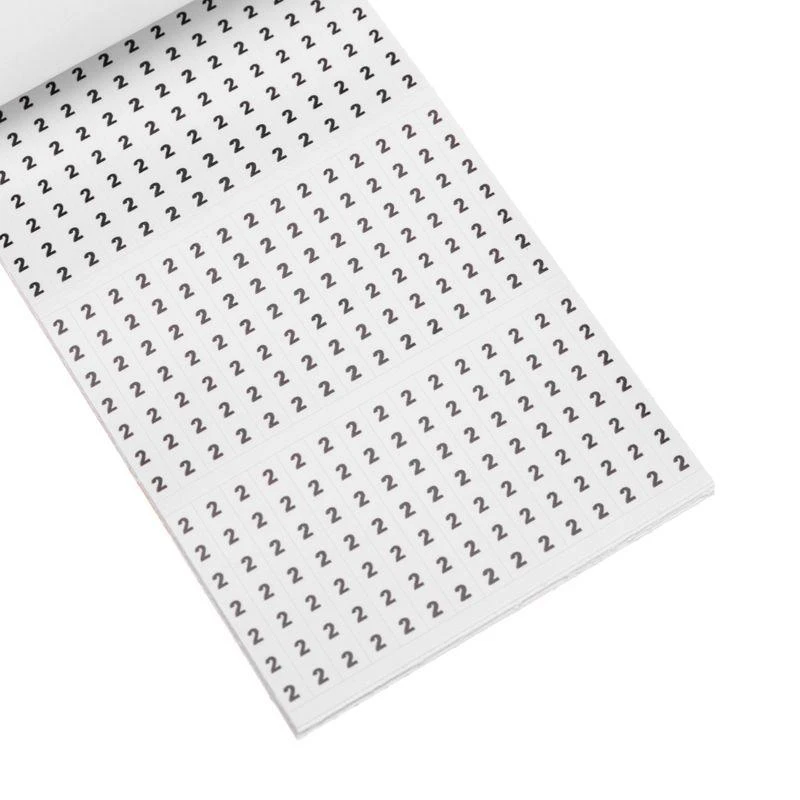 Набор состоит из 10 листов с цифрами от 0 до 9. Каждый лист содержит 45 наклеек одного числового значения. Одна наклейка состоит из 7 знаков.