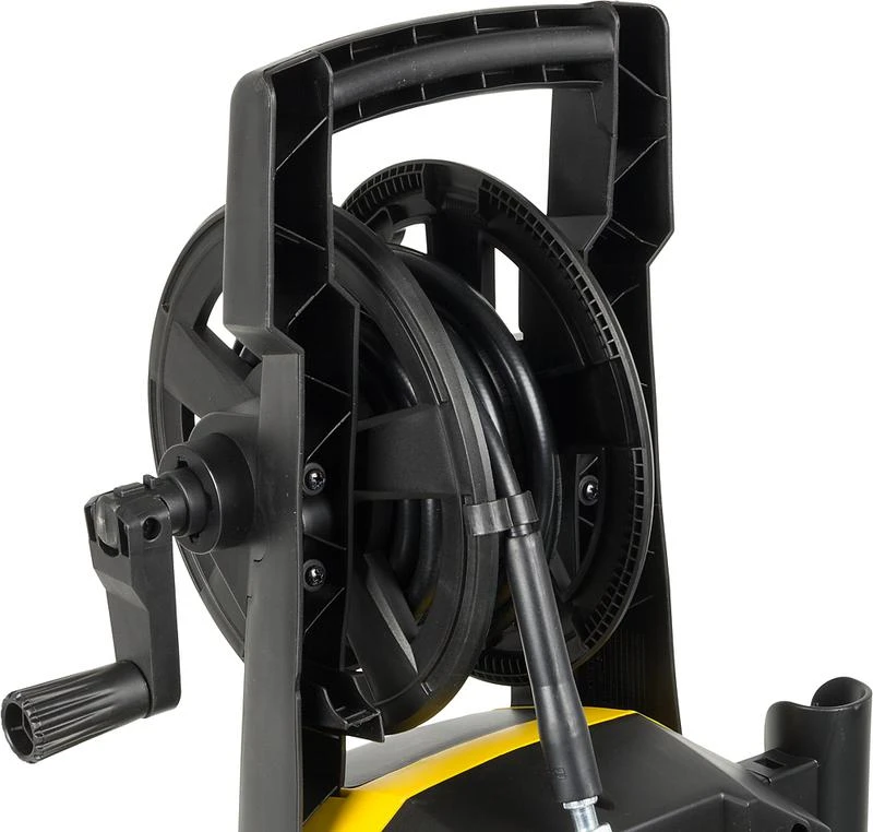 Наличие барабана для шланга Да Мойка высокого давления может использоваться для очистки от грязи садового инвентаря, мытья автомобиля и других транспортных средств, чистки фасада дома, подъездных дорожек и заборов.