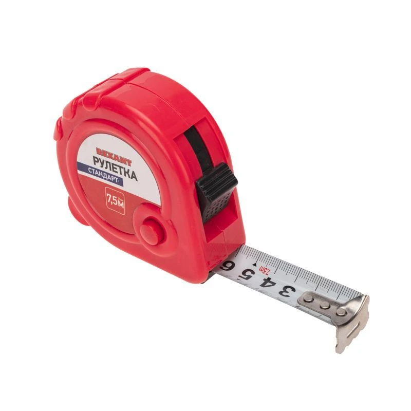 Инструмент оснащен удобным зацепом с отверстием посередине, которое позволяет зафиксировать полотно рулетки на шляпке гвоздя или самореза.