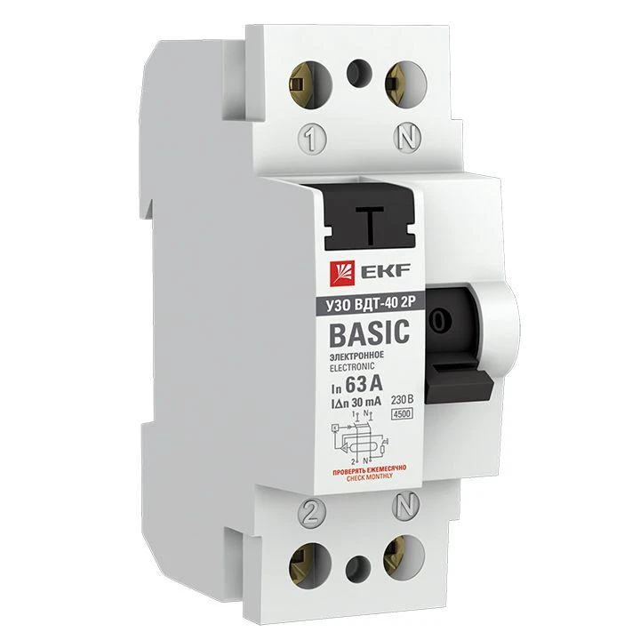 Товар Выключатель дифференциального тока (УЗО) 2п 63А 30мА тип AC Basic электрон.EKF elcb-2-63-30e-sim доступен с доставкой по г. Москва, Московской области и территории РФ, или самовывозом.